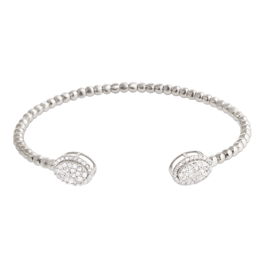 نقدم لك هذا السوار بتصميم متفرد بصف مفتوح من المنتصف بين حرفي تي مرصعين بالأملاس، وصف ألماسي آخر ملتف حول معصمك، مع سلسلة للتحكم في مقاسه، لا تفوتي متعة ارتداؤه في مناسباتك التي تحتاج لإطلالة مميزة.