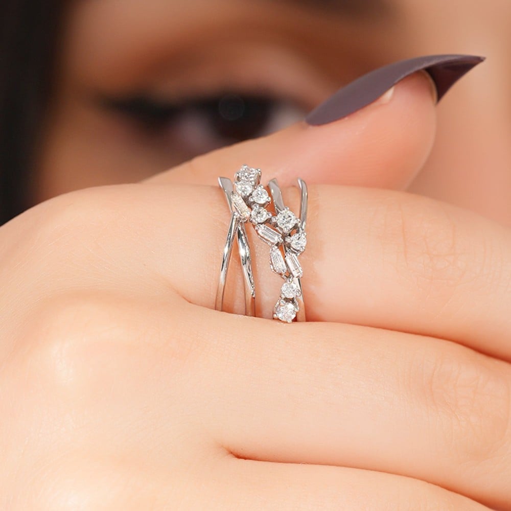 الاحتفال بذكرياتك الخالدة تستحق إطلالة لا تنسى، وهذا الخاتم المرصع بالألماس بأسلوب فريد سيفي بالغرض، ارتديه وانعمي بإطلالة تخطف الأنظار.