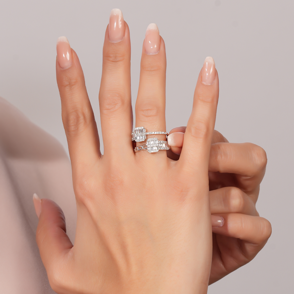 "ارتدي الفخامة مع خاتم الألماس الذي يعكس جمالك الداخلي. 💫 تصميمه الرائع ولمعانه الخالد يُضفيان على أسلوبك بريقًا يأسر القلوب."