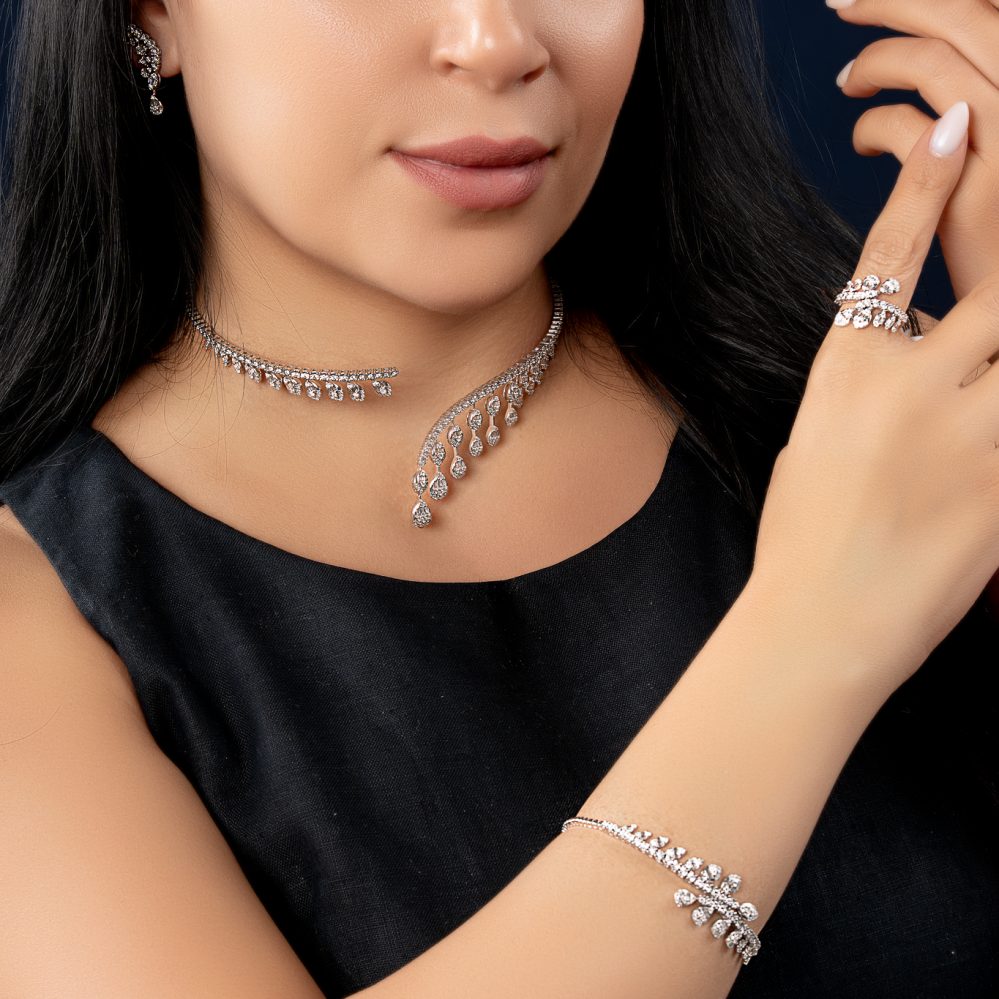• "طقم المجوهرات هو عنوان الفخامة في أبهى صورها. 💎✨ بتصميمه المتناسق وتفاصيله المتقنة، يُضيف الطقم لمسة من الرقي إلى إطلالتك ويجعلك تتألقين بجمال خالص في كل مناسبة. ارتديه لتشعري بأنكِ نجمة هذا الحدث."