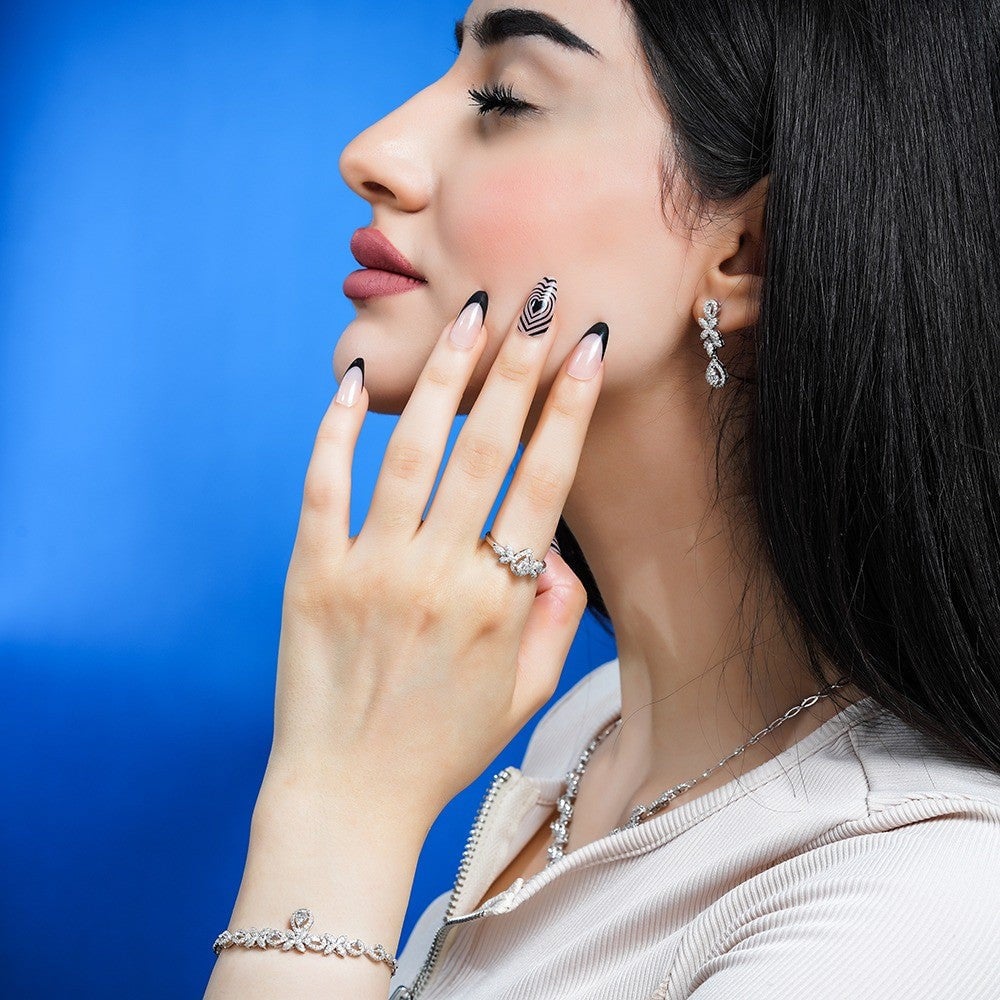 كوني محور انتباه الجميع من حولك عند ارتداء هذا الطاقم البديع، بزخرفة ألماسية ليس لها مثيل، ارتديه في مناسباتك لتضفي إشراقة براقة لأناقتك.